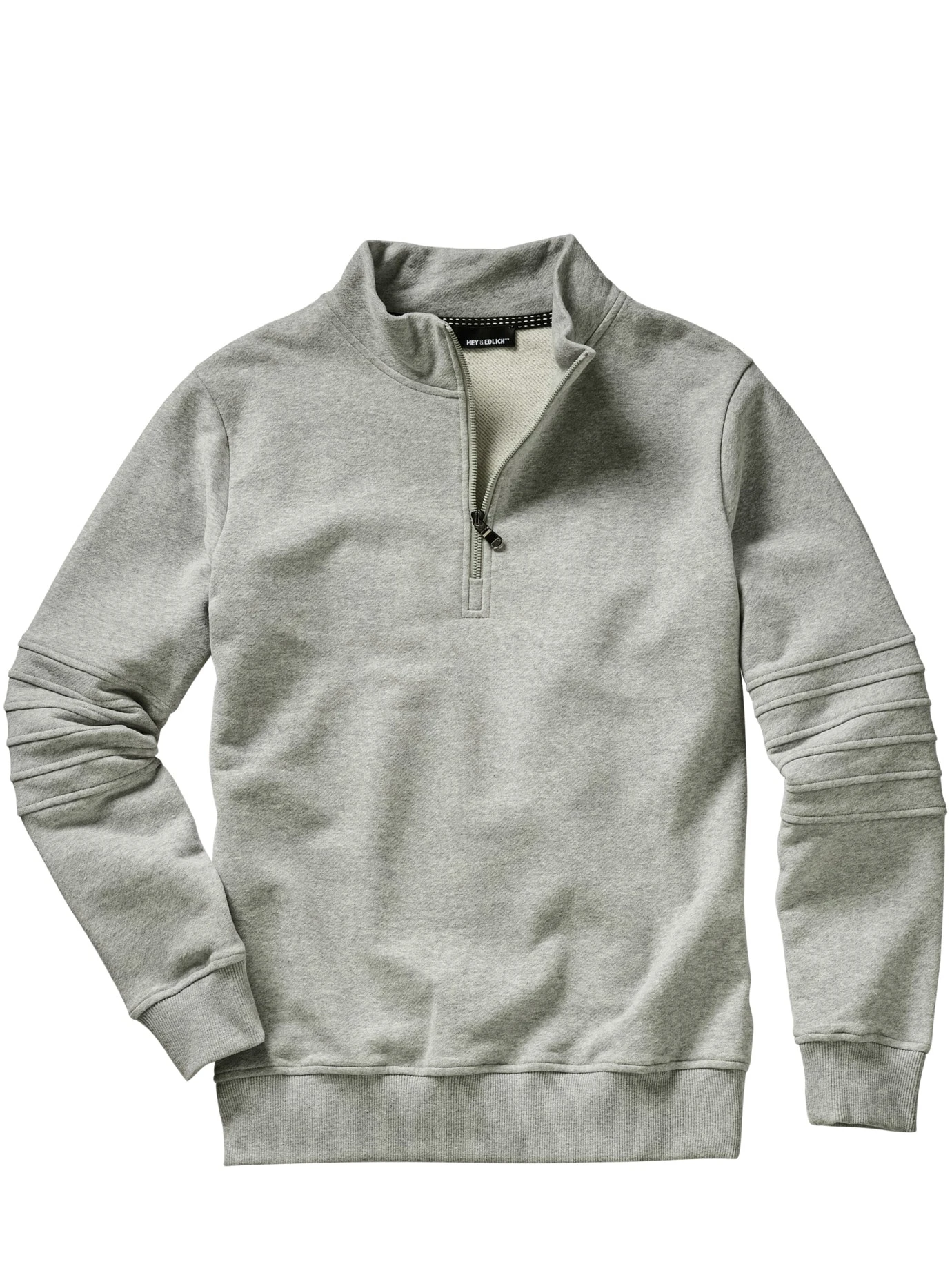 Verarbeitung: Sein fester Baumwollsweat schützt vor Kälte, der etwas höhere Kragen samt Reißverschluss vor Durchzug, die Bündchen an Saum und Ärmeln liegen akkurat an. Sportliches Indiz: die Protektoren an den Ellenbogen, die Standfestigkeit verleihen und unansehnliche Beulen vermeiden. Regular Fit.