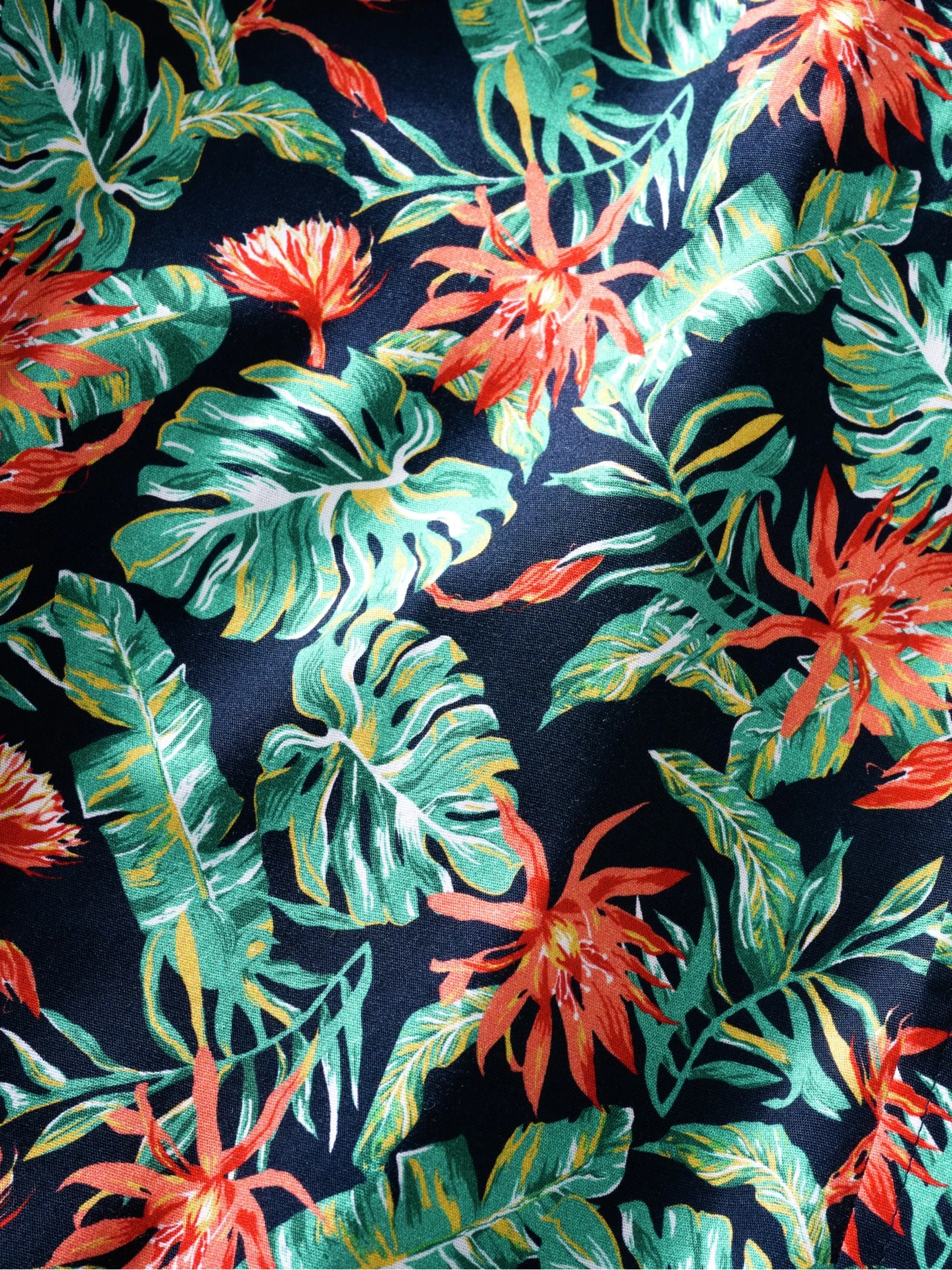 Macht Spaß. Die Vermutung liegt nahe – in diesem Hemd werden Sie die guten Stunden des Jahres erleben. Sein Gefüge aus viel Chlorophyll und exotischen Blüten verschafft gedanklich den Urlaubskick – ideal also im Strandrestaurant zur dunklen Jeans, wenn’s hilft, auch im Kommunikationsworkshop zum Sakko samt Chino. Der Baumwollstoff trägt sich gefällig und ist atmungsaktiv. Zum Abkühlen zusätzlich noch Ärmel krempeln, dann blitzt am Manschetteninneren ein feiner Farbkontrast auf.