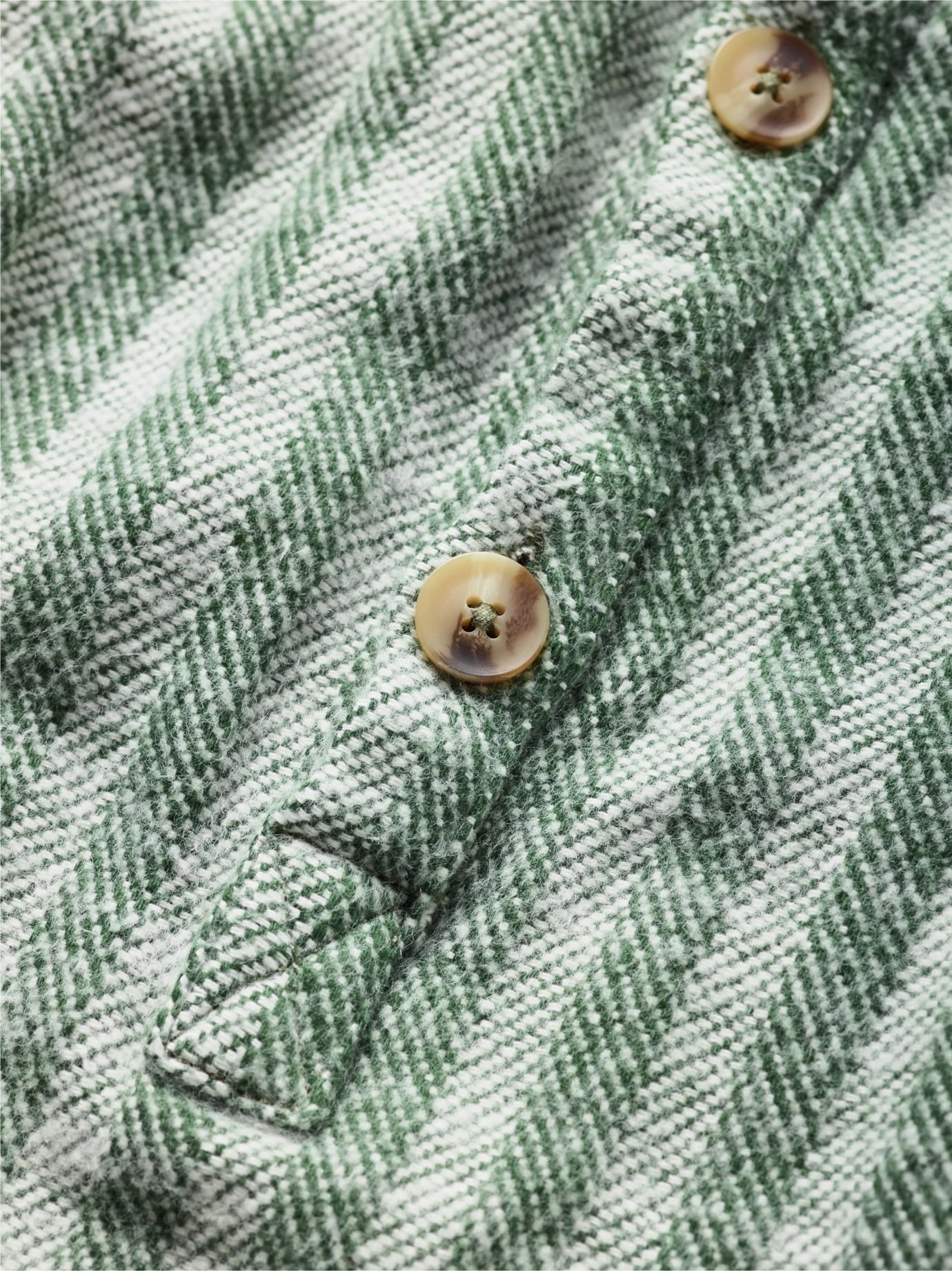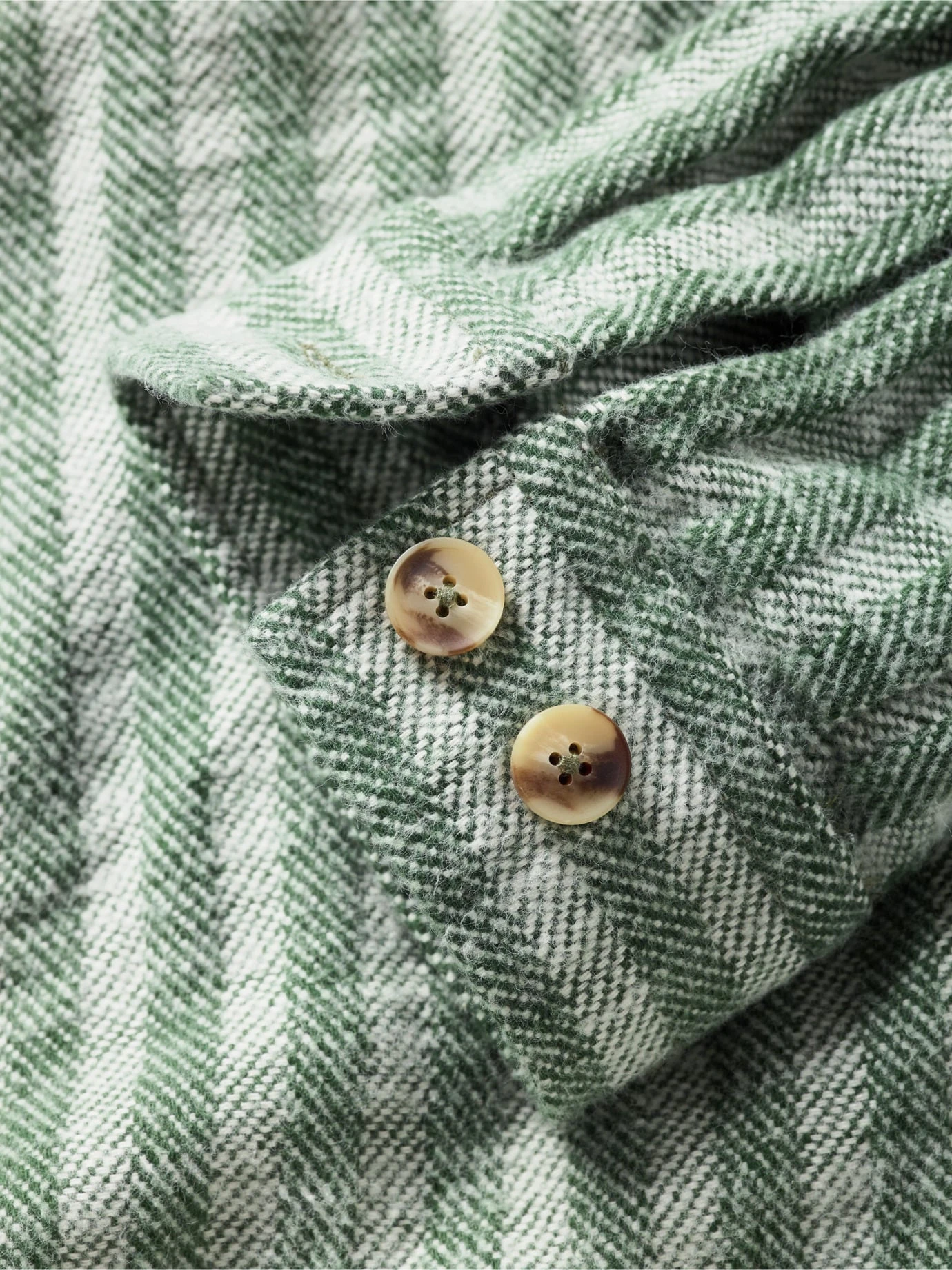 Die Struktur modelliert seinen Charakter. In Anlehnung an Männer, die Gestaltungsspielraum benötigen, ist dieses Hemd entstanden. Dafür trägt es genau die richtige Weite und einen entspannten Schnitt, in dem es sich gut werkeln lässt. Zwei aufwendig gefärbte Garne werden dafür miteinander verwoben und verleihen damit dem Stoff Charakter. Der ist leicht angeraut, auf der Haut fühlt sich das Hemd beinahe an wie Flanell, der Baumwoll-Herringbone ist aber deutlich weicher und lässt Sie nicht überhitzen.