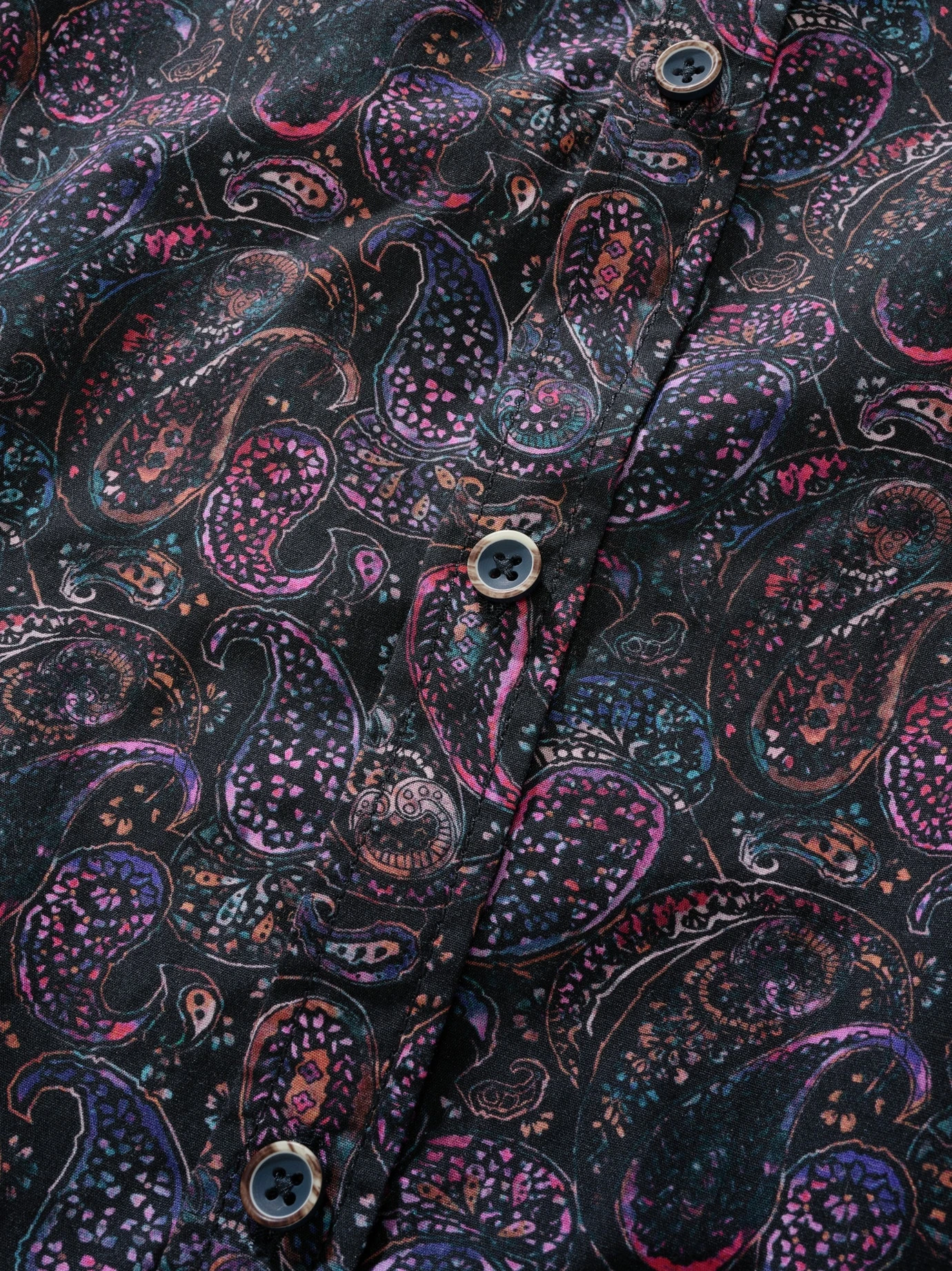 Ornamentale Kunst. Die filigranen Paisleys auf dunklem Grund wirken wie ein rares Mitbringsel einer Fernreise. Bei diesem Design gehört das Geheimnisvolle dazu bzw. macht das Hemd sogar aus, da Sie damit auf jeder Party die richtige Präsenz ausstrahlen. Ein Potpourri erlesener Farben auf feinem Baumwoll-Popeline – in knallbunt wäre die Wirkung längst nicht so edel. Highlight zur aufgebügelten Anzughose (am besten, wenn diese schmal geschnitten ist und leicht glänzt). Meist getragen, klar, zur Jeans.