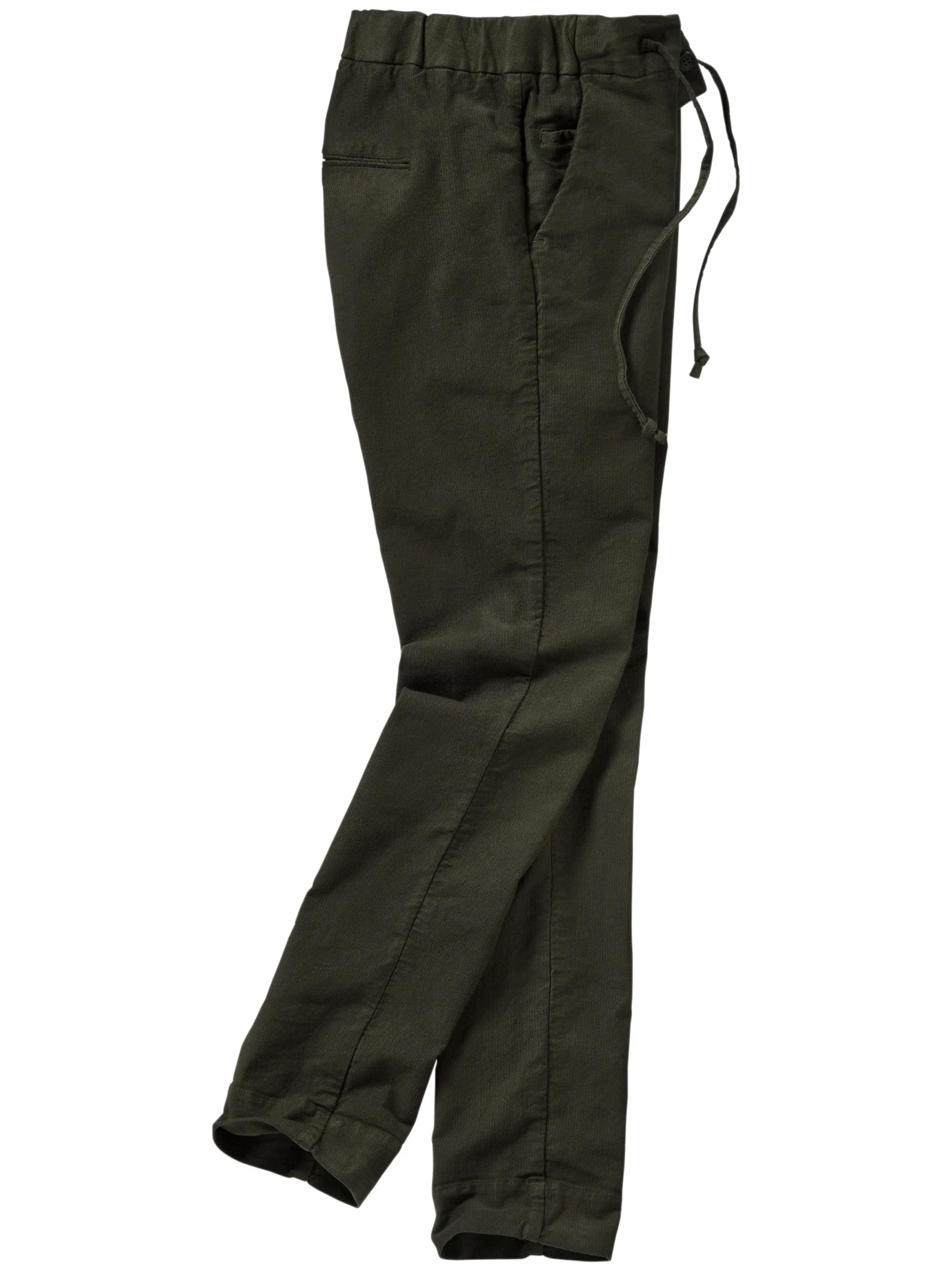 Nur 149 weitere besitzen diese Designerhose. Kenner sehen in ihr den Schnitt der tre21mens, mit dem geraden Beinverlauf und dem Tunnelzug als Designelement. Gemeinsam mit hannes roether haben wir uns bei dieser für einen nicht aufgeschnittenen Babycord aus Deutschland entschieden, der ganz flexibel und fernab des Bockigen ist. Gehalten in Oliv, das sich in der Kombination variabel hält, farblich wie stilistisch. Der Rippenstoff lässt eine Hosenanzahl von 150 zu – mehr nicht.