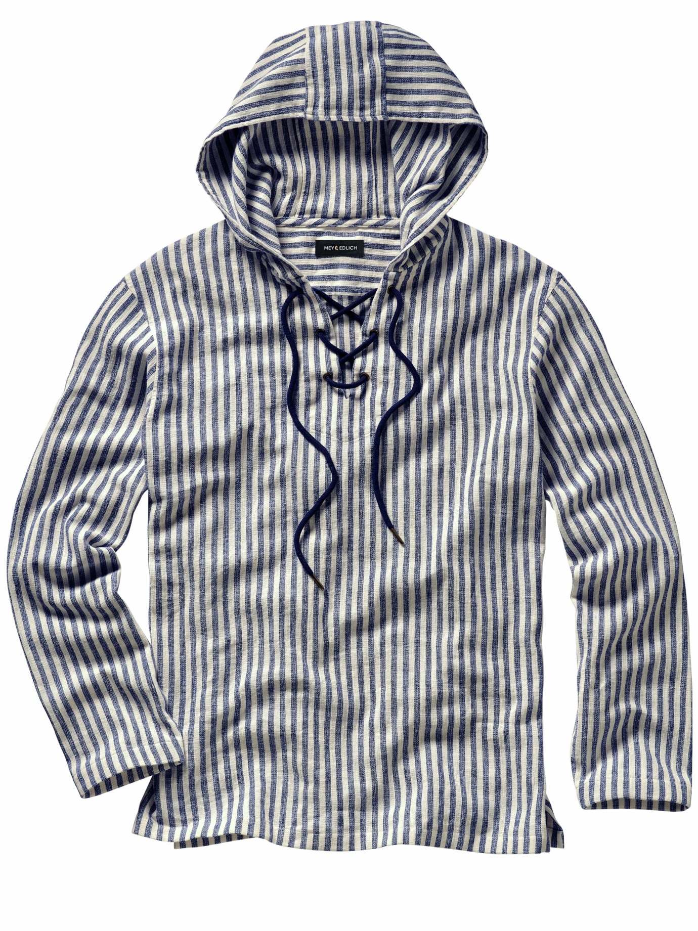Weil es sich damit besser erobern lässt. Dieses Hemd hat genau den richtigen Schnitt, um Sie bei ausladenden Bewegungen angemessen bedeckt zu halten. Von der Idee her ein Schlupfhemd, mit viel Spielraum dank Seitenschlitzen und einer Kapuze, die bei Windstärke 2 gut am Kopf liegt. Die Knopfleiste weicht einer sogenannten Drawstring-Schnürung, die den richtigen Platz am Hals lässt. Weil auf hoher See die Sonne stärker knallt, gefertigt aus griffigem Baumwoll-Leinen-Stoff. An Bord zur Badebuxe, an Land zu Shorts.
