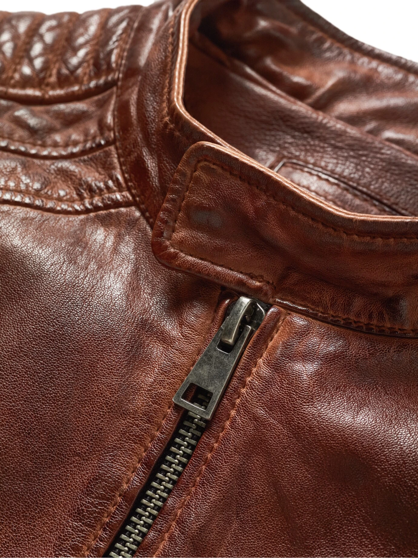 Ihre Design-DNA enthält Spuren von Asphalt. Diese gebrannte Version der ikonischen Bikerjacke lässt auf Geschwindigkeit, Wagemut und Abenteuer schließen. Cool in feinem Lammnappa, das sich mit der Zeit am Körper feinjustiert. Klassische Passform, innen mit weichem Baumwollfutter. Nach außen markant mit Reißverschlüssen, die gesteppte Schulterpartie samt Sattelüberzug betont maskulin das Kreuz. Starker Auftritt beim Biketreff mit Schwarz und Weiß oder Grau. Als Bruch on point mit Hemd und Chino.