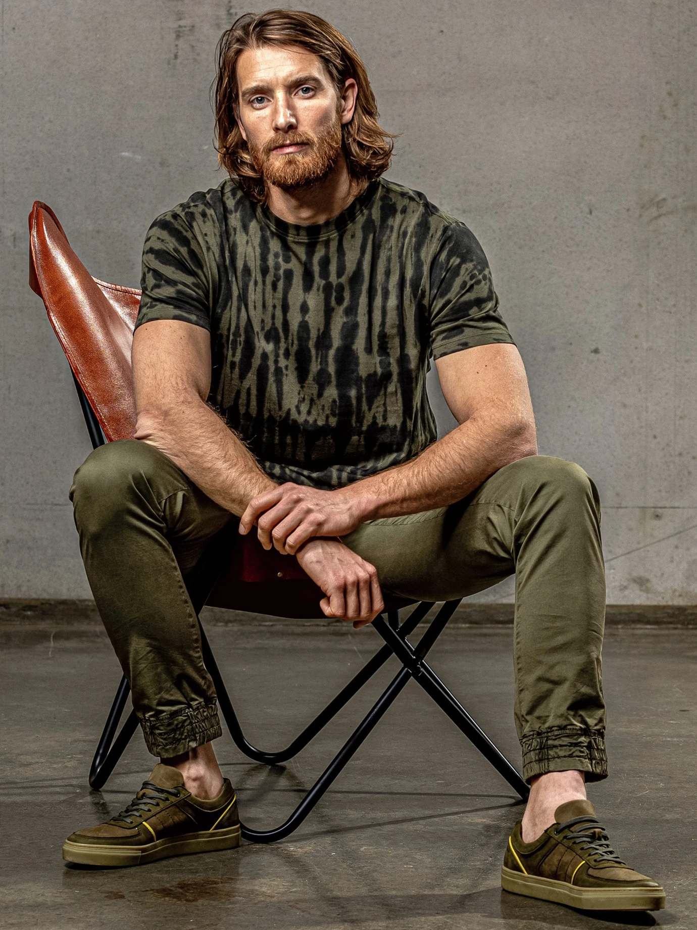 Kunstvoll, aber nicht spirituell. Das Prinzip Batiken ist im vierten Jahrhundert vor unserer Zeitrechnung entstanden. Einst wurden Muster mit flüssigem Wachs auf Stoff gemalt, richtig populär wurde die Kunst, als die Hippies Farbverläufen Leben verlieh. Heute wird für dieses Shirt indische Bio-Baumwolle gefärbt. Höchst individuell, durch die Farbwahl aber nicht zu wild und so outfittechnisch immer noch gut händelbar. Schön zu hellen Jeans, nachtschwarze Hosen wirken genauso gut.