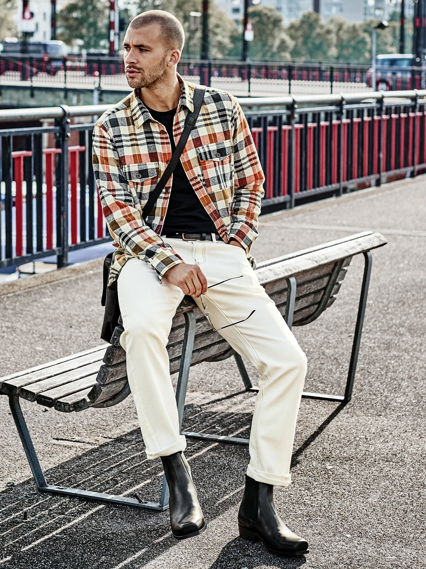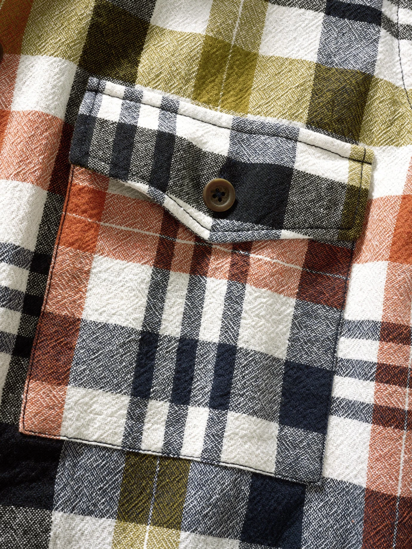 Mehr als Muster. Es erinnert ans Prinzip Flanell, doch statt wie früher, als es bei der Ernte helfen und beim Feiern aushalten musste, ist dieses viel leichter. Sein glattes Gewebe stammt aus Italien, wo man sich traditionell mit feinerem Zwirn beschäftigt. Mit griffiger Struktur und der damit verbundenen Langlebigkeit, unterm Strich schlicht stadtaffiner. Das natürliche Farbspektrum entsteht durchs sanfte Waschen, haut so zu jeder Hosenfarbe hin, ob als Hemd oder Jackenersatz.