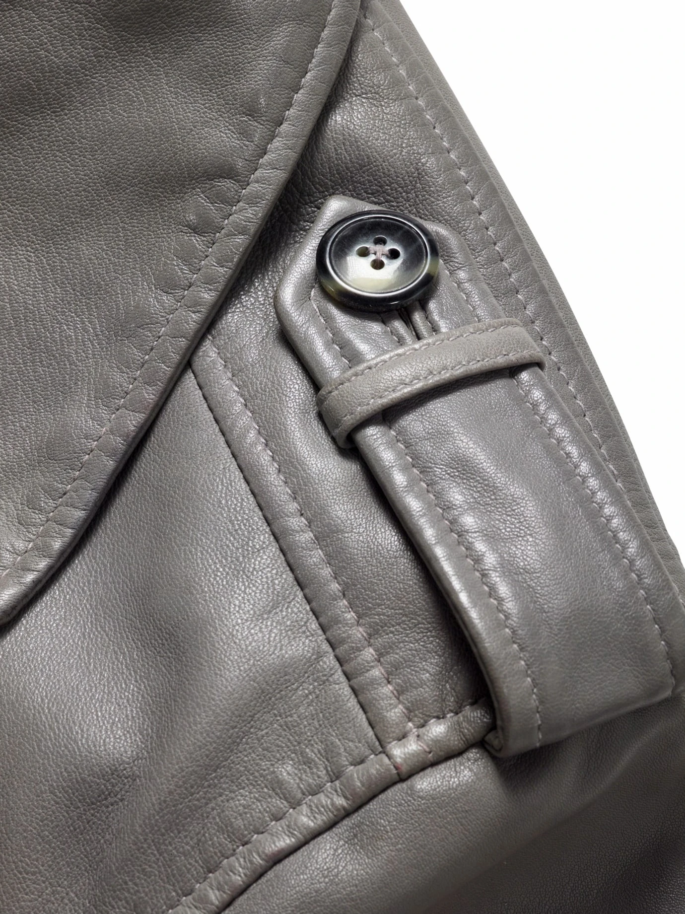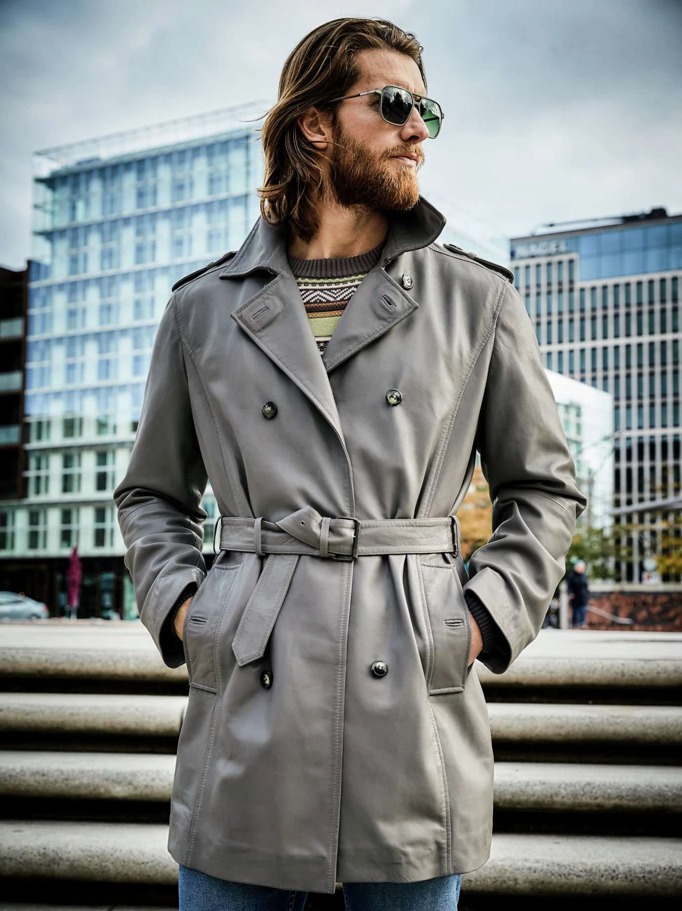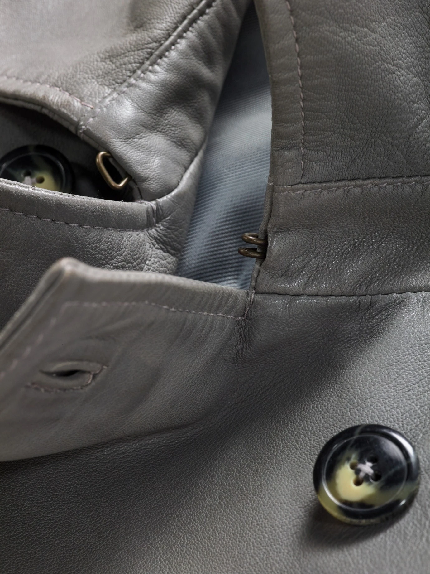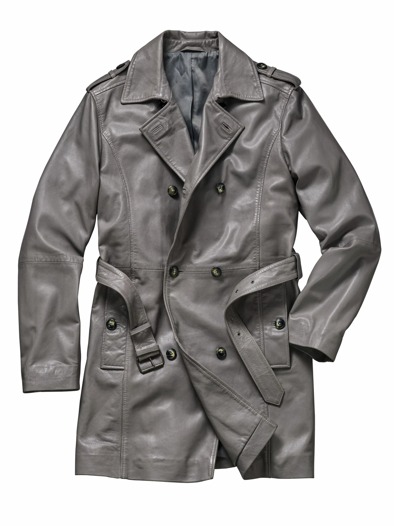 Schöner ging nicht, besser schon. Klassiker verändert man nicht. Optimieren ist erlaubt. Das brachte uns auf die Idee, den zweireihigen Trench aus super softem Lammnappa zu machen. Womit er zu den wenigen Dingen gehört, die das Zeug dazu haben, Sie ein Leben lang zu begleiten. Mit seinem dezenten Grau adelt und edelt er fast alles, was in Ihrem Kleiderschrank hängt, und bedient die drei wichtigsten Lebensgefühle: Pullover, Jeans, Sneakers / Hemd, Stoffhose, Lederschuhe / Rolli, Chino, Stiefel. Zu „dem“ Mantel passen dann auch „die“ Uhr und „der“ Füllfederhalter.