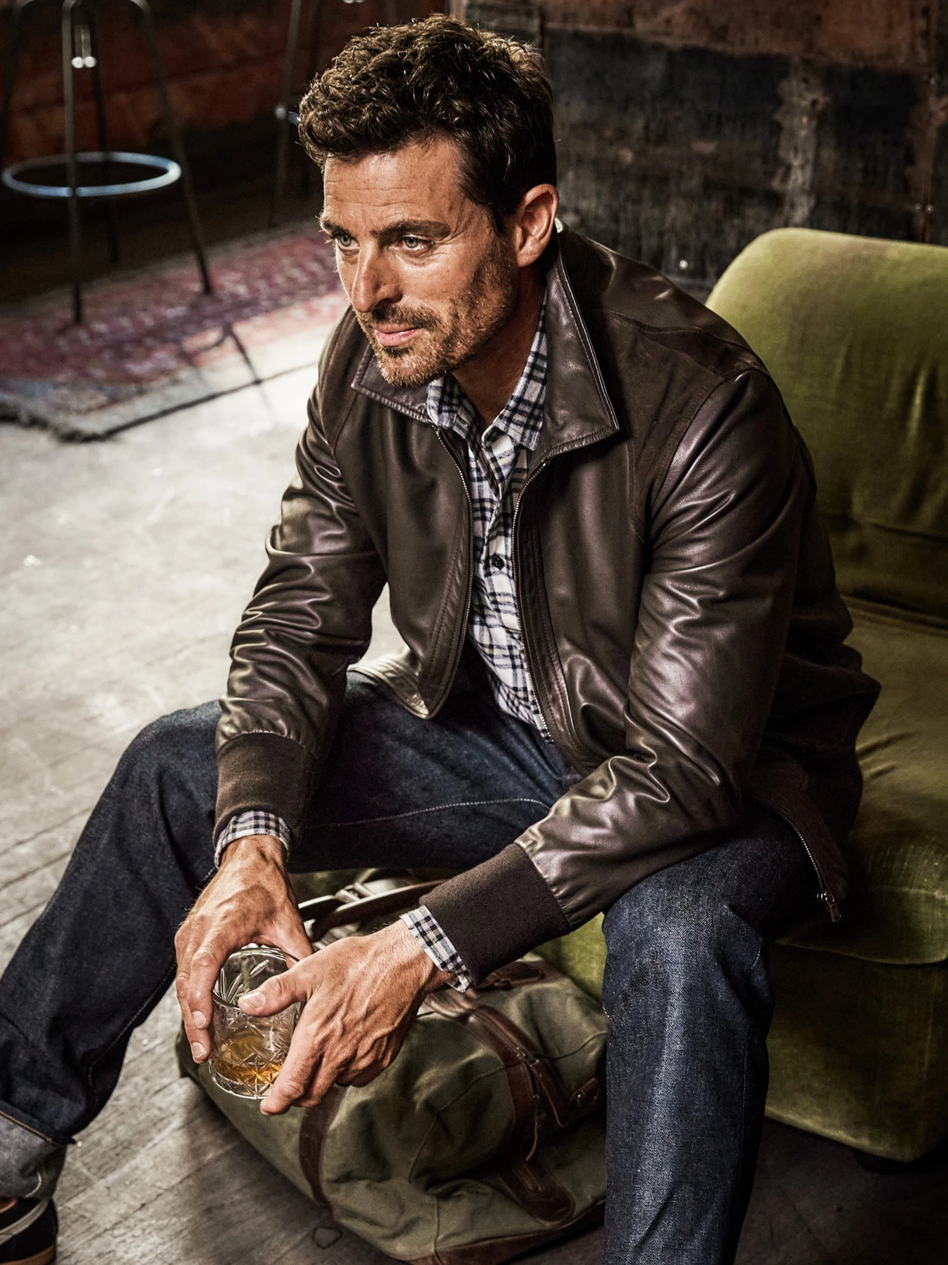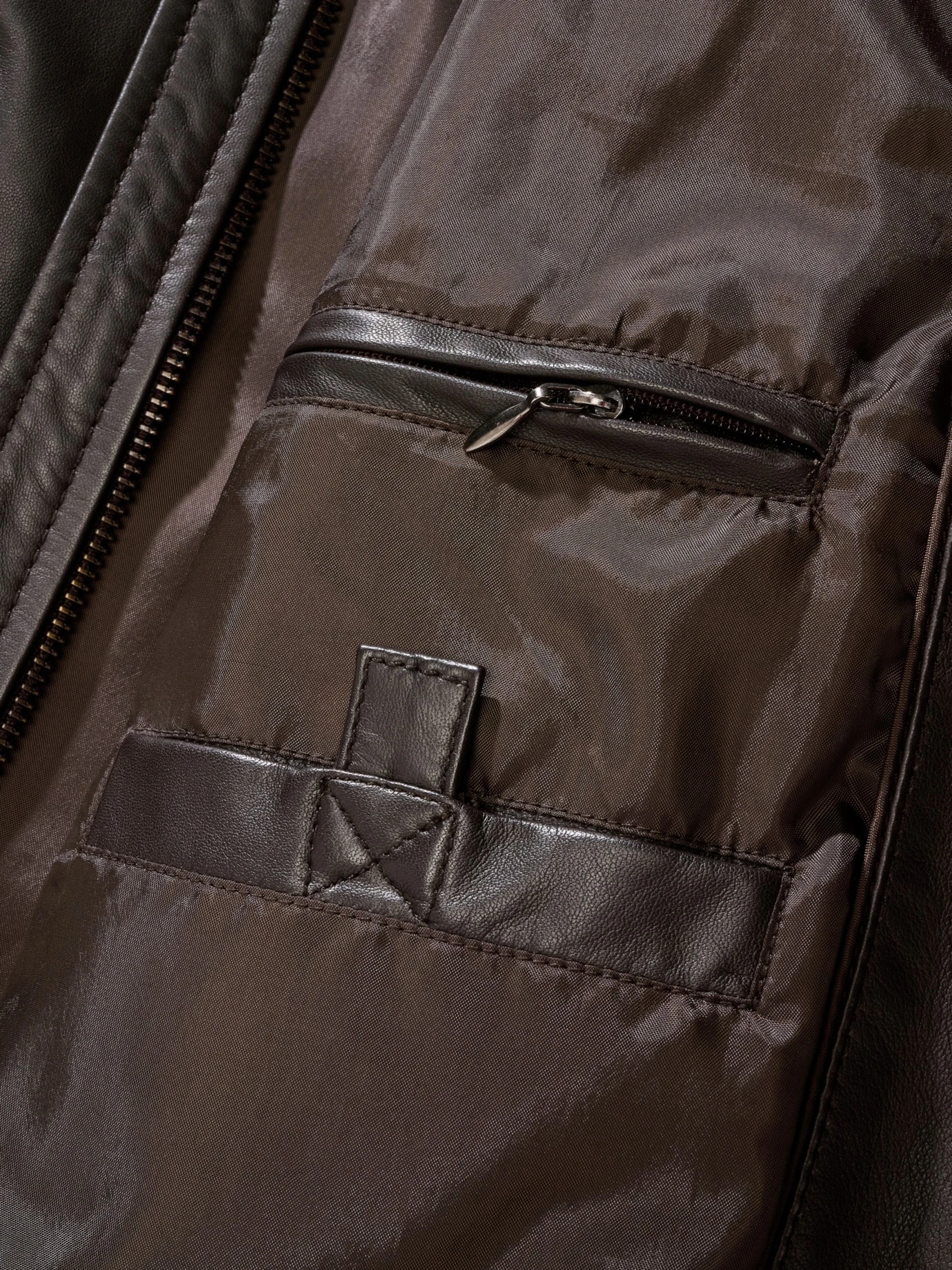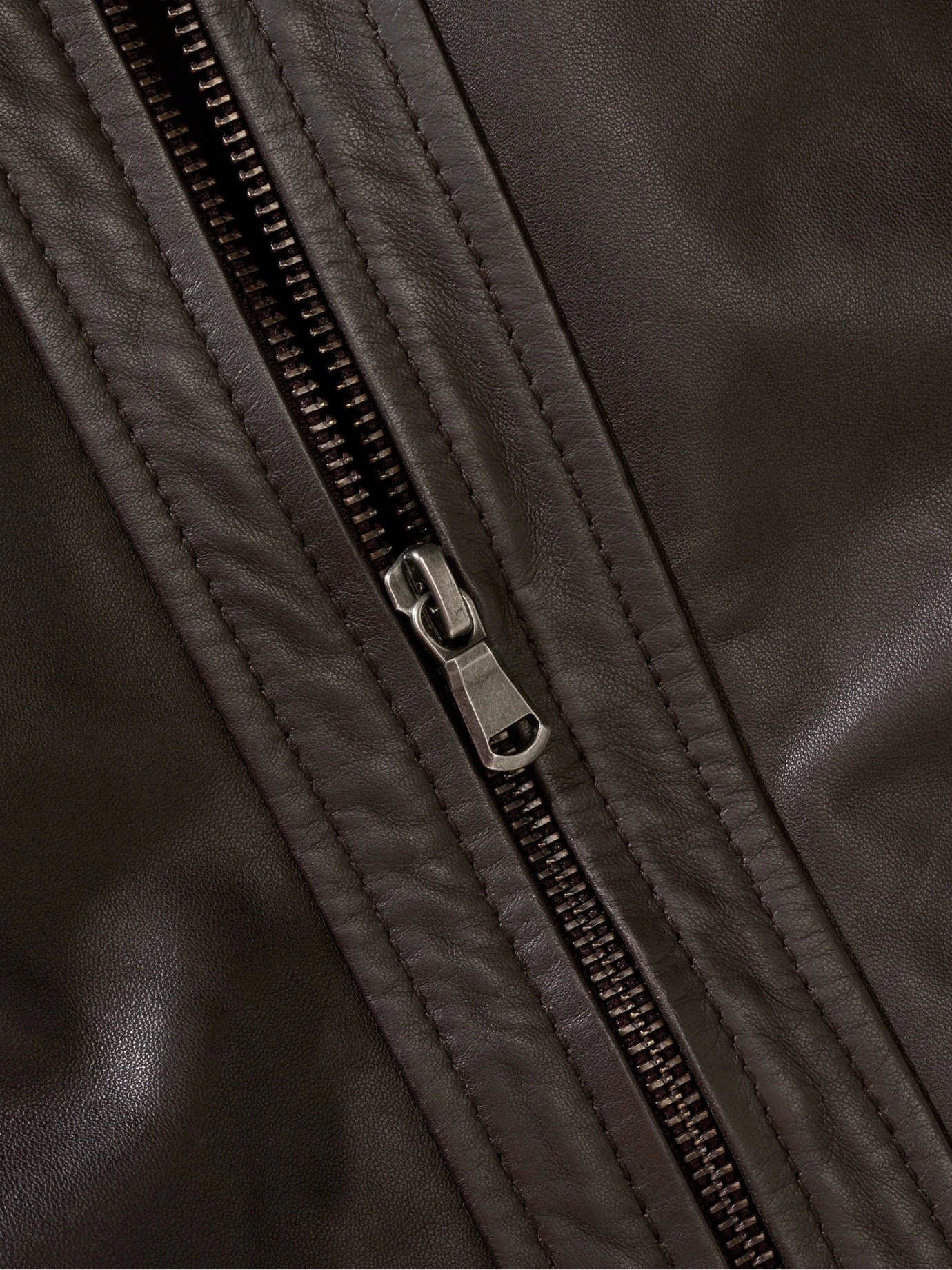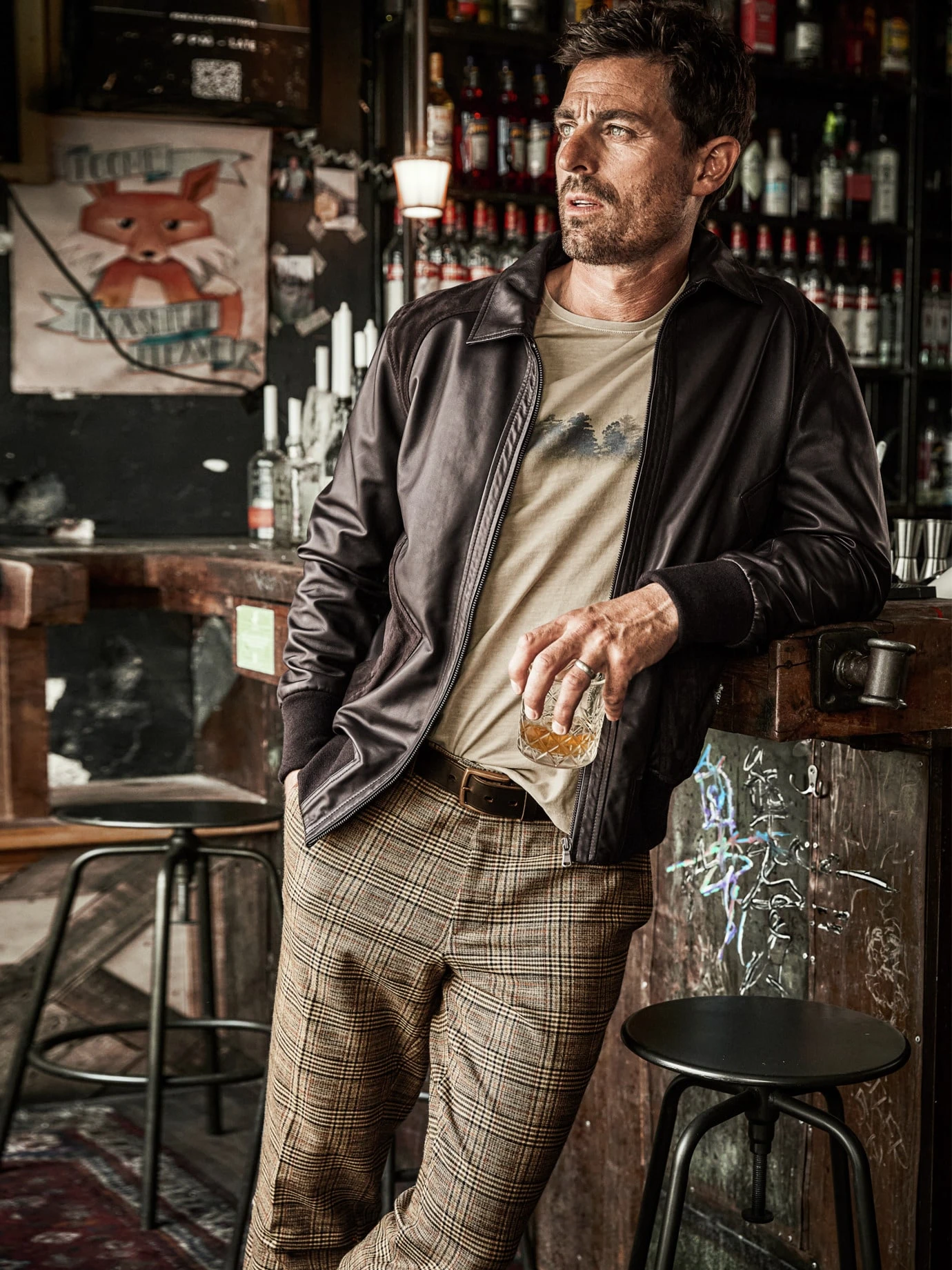 Rebel Without a Cause. Ein Stück Unangepasstheit haftet dem Lederblouson noch immer an. Hier gelangt er durch das perfekte Mischverhältnis zu neuer Dynamik: Charismatisches Ziegenvelours trifft auf aalglattes, weiches Lammleder. Äußerst sportlich, in Summe ungesehen, eben eine Jacke, die mitzieht. Ansonsten klassisch, wie in den 1960ern, als ihre Form die Hochblüte erlebt: mit klassischem Kragen und elastischen Strickbündchen.