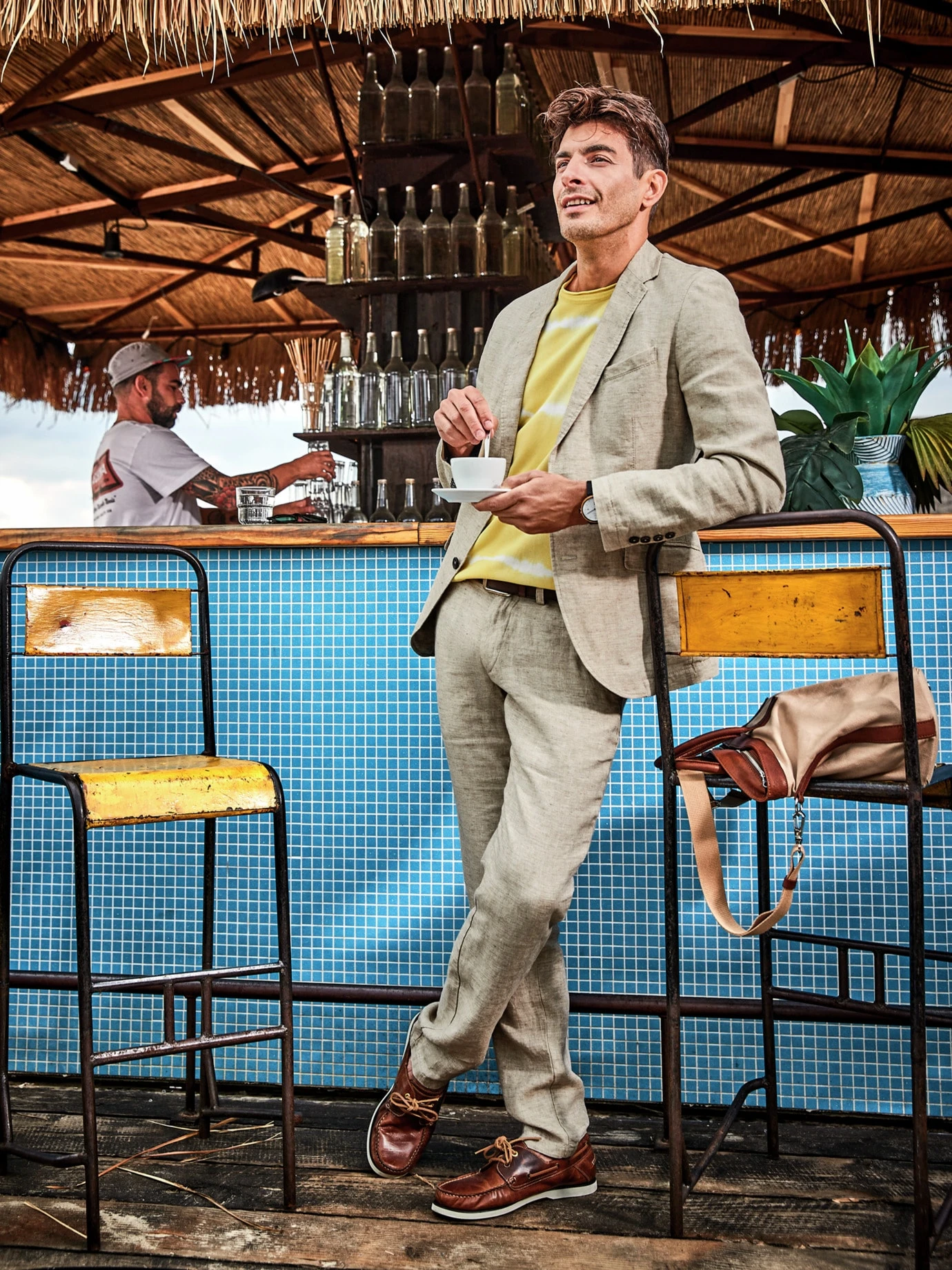 In Indonesien bitte am Freitag einplanen, so lautet seit 2009 die Empfehlung der Regierung, dann Batik zu tragen. Noch heute ist das Muster Identitätsquelle und hat womöglich daher noch immer diese sympathische Wirkung auf uns, da es von Handarbeit erzählt und immer auf ganz natürliche Weise anders ausfällt. Der Grundstoff ist hier ein italienisches Baumwollgarn, fein verstrickt zu einem leichten Shirt. Der Rest ist Kunst, die so im Übrigen ganz typisch für Mittel-Java und hierzulande wunderschön zu Sommerhosen ist.
