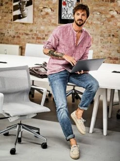 Der Öko unter den Hemden. Vom Anbau der Fasern, über das gesponnene Garn, dem gewebten Stoff bis zum fertigen Teil – hier werden alle Verarbeitungsstufen kontrolliert und nach GOTS (Global Organic Textile Standard) zertifiziert. Und so spiegelt sich die Naturverbundenheit auch im Design wider: ein Naturburschen-Karo in gediegener Farbkombination. Übrigens mit zwei Seiten: Zwei Stoffe, die mit feinen Stichen miteinander verbunden (gebondet) sind.