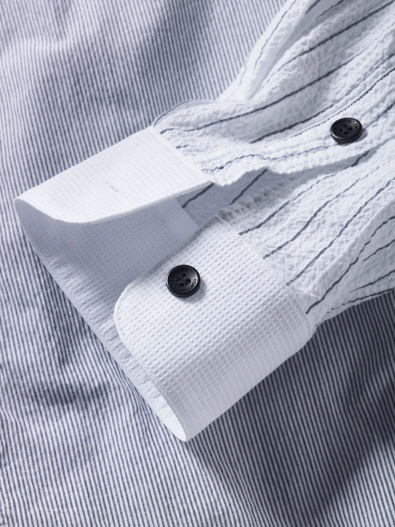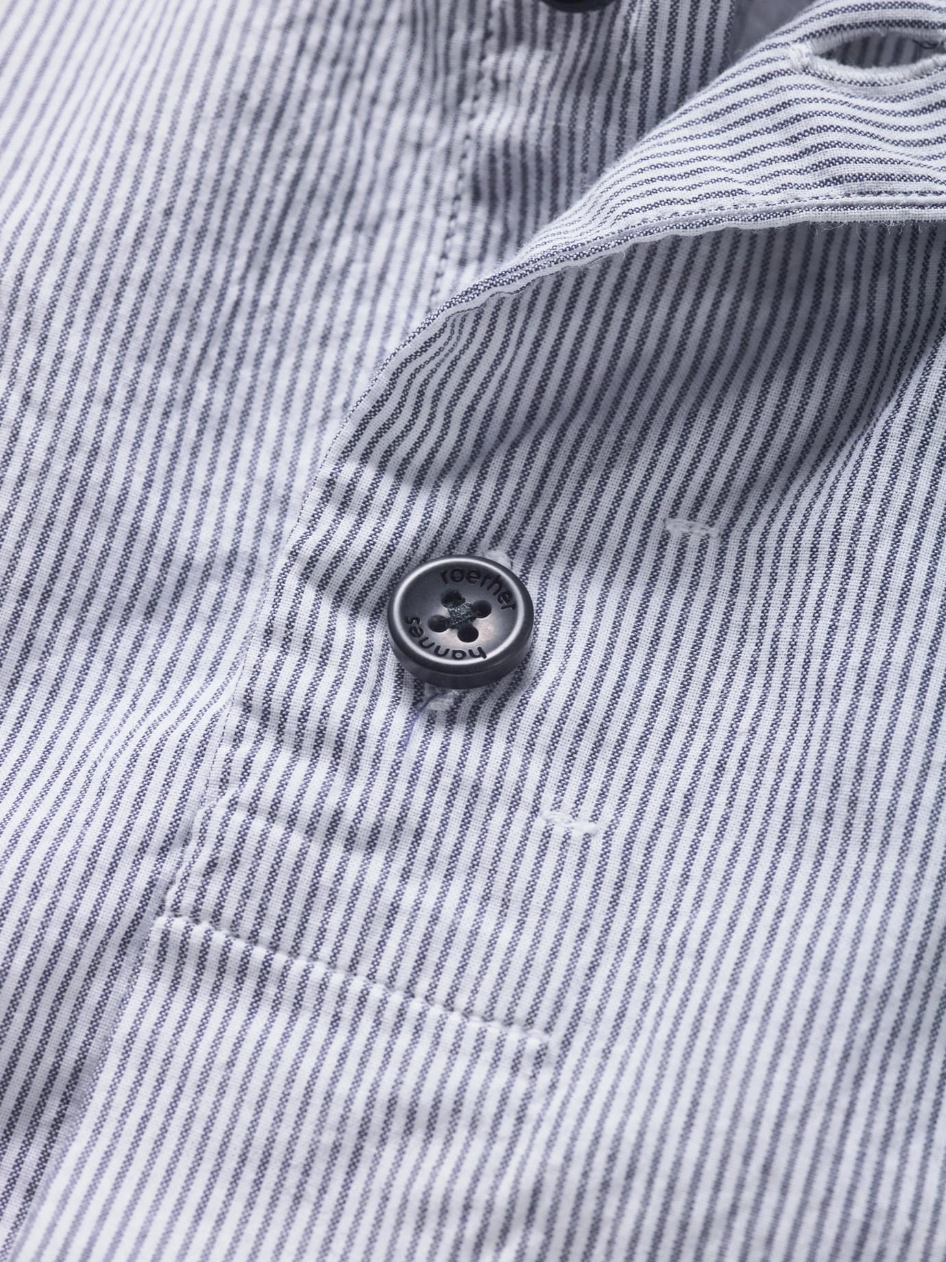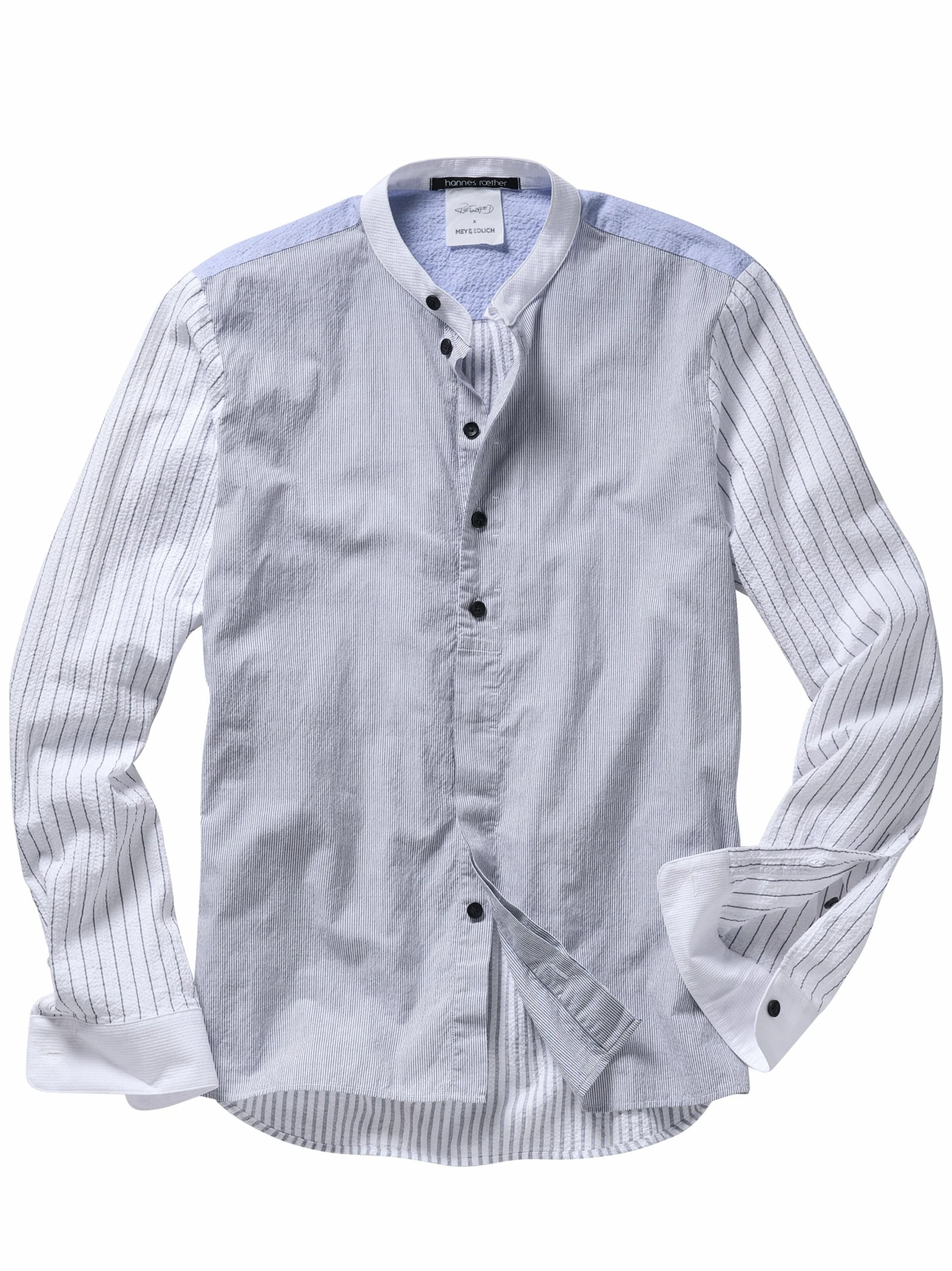 Nachhaltiges Design à la roether. Er denkt den Patchwork-Begriff konsequent weiter. Die Stoffe teilen sich ihren Ursprung, gewebt aus viel Baumwolle, die dem Hemd eine angenehme Luftigkeit verleiht, der Rest Elasthan sorgt fürs entspannte Tragegefühl. Anschließend gewaschen, so trägt es trockenen Griff und unempfindliches Handling.