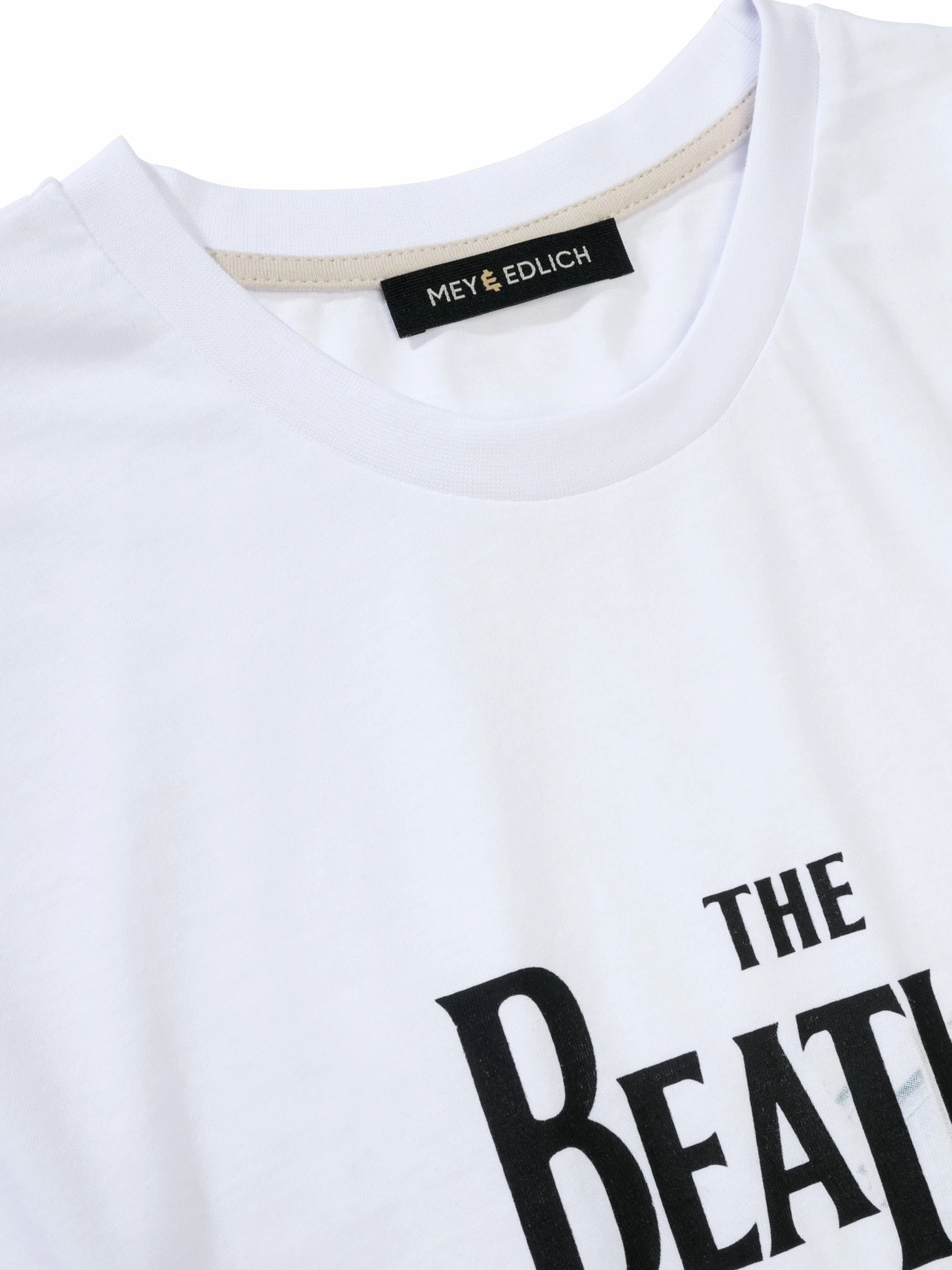 Bislang unveröffentlicht. Als 2013 das Album „On Air – Live at the BBC Volume 2“ erschien, gab es on top 22 bislang unveröffentlichte Titel wie auch 23 Sprachaufnahmen. Geht gut auf die Ohren, auf der Haut machen sich die Jungs in den strengen Anzügen auch ordentlich. Bedruckt auf Baumwolljersey, anständig vernäht, sodass das Shirt nicht verdreht. Das Halsbündchen trägt einen Hauch Elasthan, so wahrt es die britische Form.