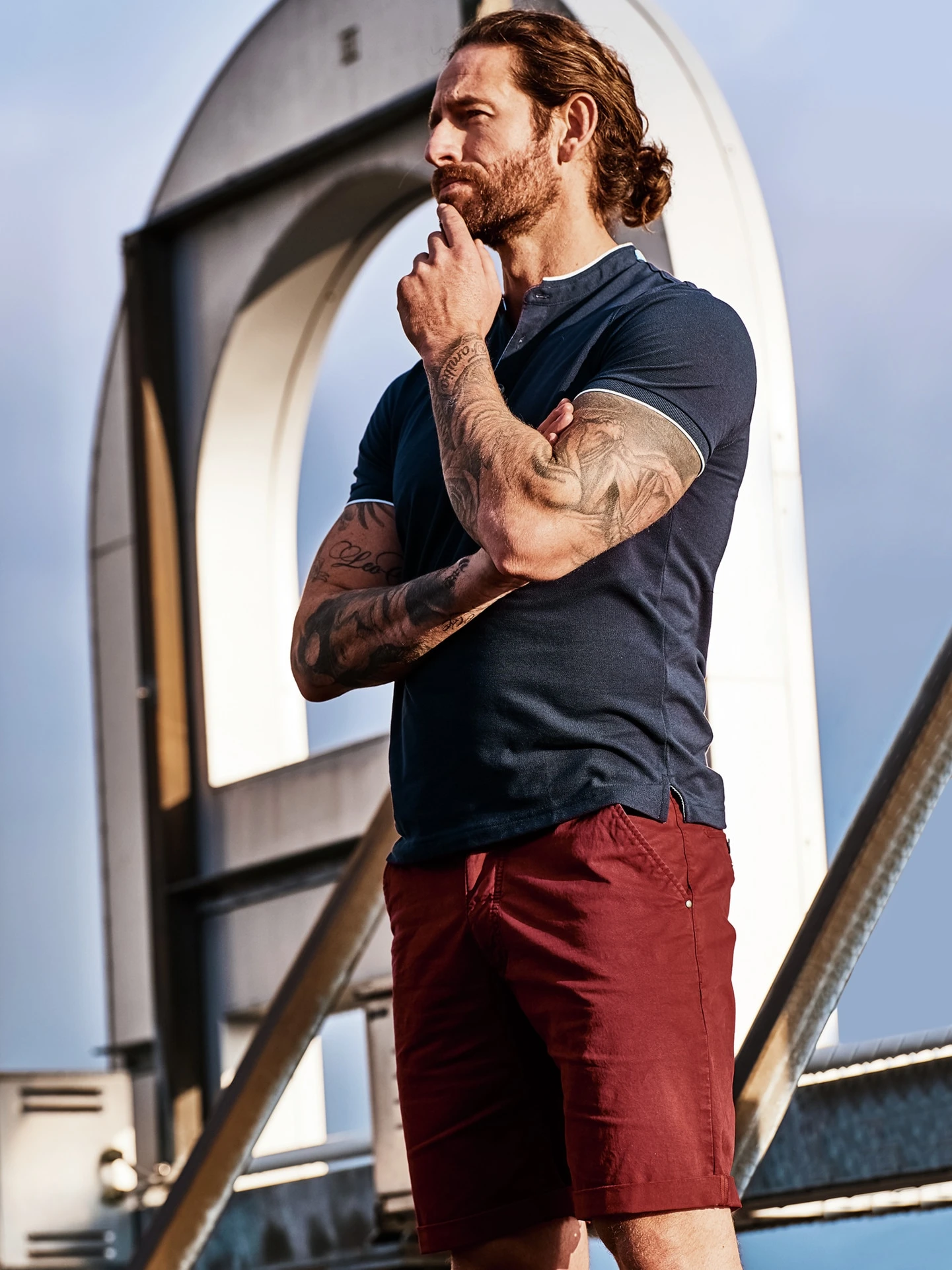 Das mit dem ungewöhnlichen Kragen. Von der Vielfalt des Olymp inspiriert, ist dieses kraftvolle Shirt entstanden. Es ist so angesagt wie selten zuvor, weil ein Polo-Shirt die hybride Verbindung von Hemd (seriös) und T-Shirt (entspannt) verkörpert – hier gewirkt als klassischer Baumwollpiqué, der die Luft zirkulieren lässt und im Sommer nicht an der Haut klebt.