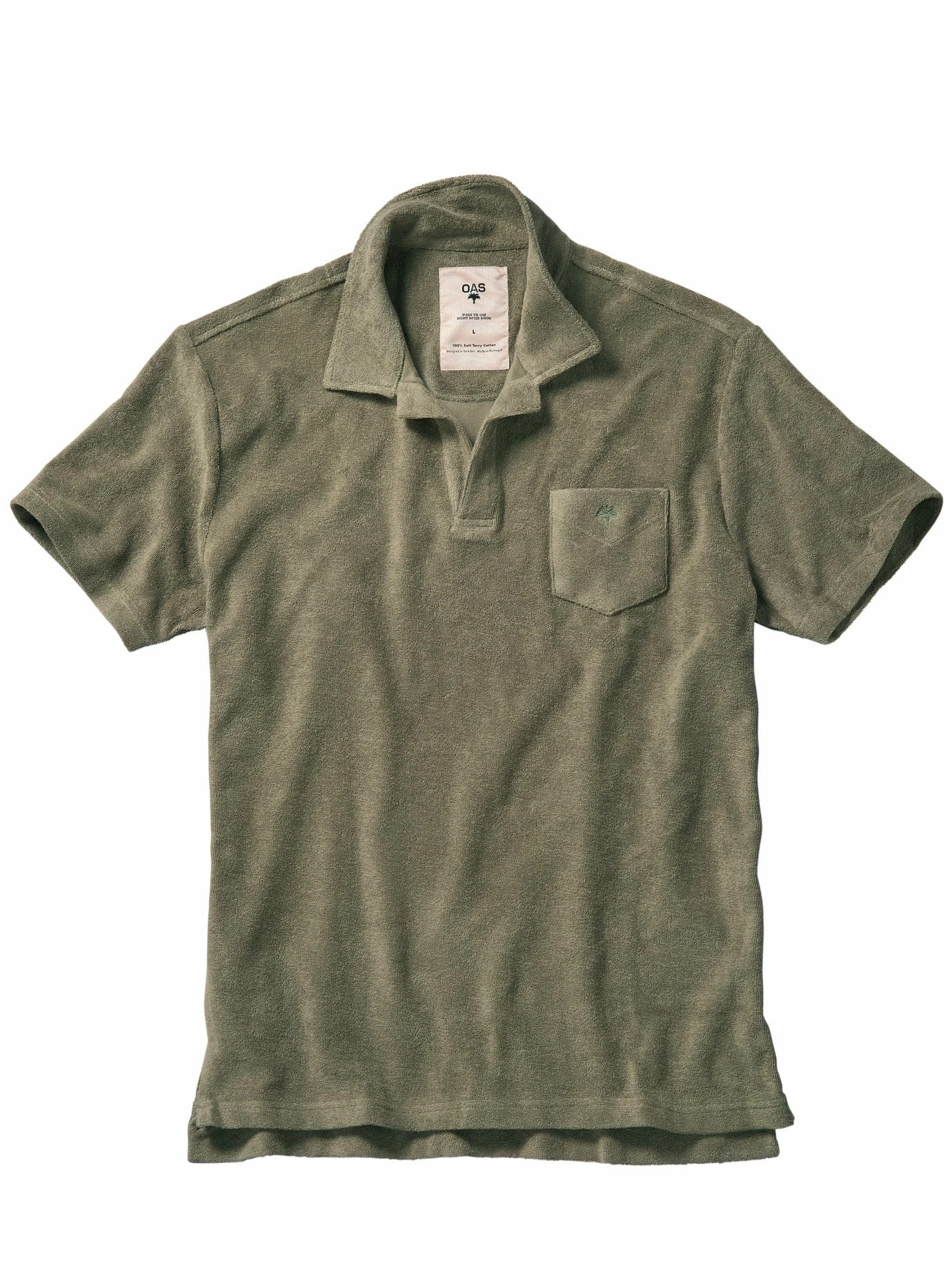 In trockenen Tüchern. 2010 versorgt Oliver seine Freunde mit Espadrilles aus Barcelona, weil es die in Schweden schlichtweg nicht gibt. Jetzt designt er unter OAS in Stockholm auch lässige Beachwear. Das Polo ist die perfekte Symbiose aus Shirt und Frotteehandtuch. Die saugfähige Baumwolle nimmt Wassertropfen auf und fühlt sich super auf nackter Haut an. Nach dem Abrubbeln geht es ab in die Strandbar.